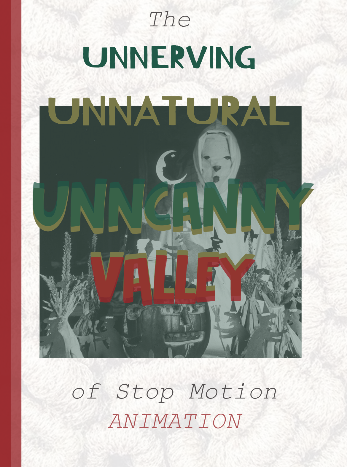Frame by frame, physical puppet models are given life through subtle, handcrafted movement. This tactile element can trigger uncanny sensations, especially when the characters are TOO human-like in form or motion. These often "otherworldy" characters are designed to be stylized and exaggerated, yet the fluid capabilities of photographing physical models and their often over emotive expressions lead to unsettling feelings in the viewer. The audience is caught with the dissonance of recognizing the characters as "human enough" to empathize with, but still alien in their textures, movements, or facial proportions. This eeriness sets itself apart from other animated forms because of the physical reality the traces left behind by a real life person's hands.